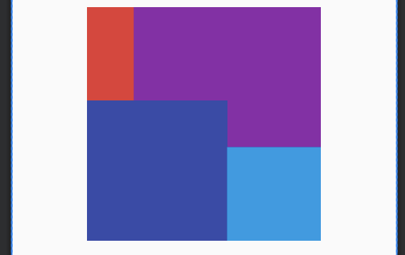 그리고 보라색은 빨간색에 Align End 를 맞추고, 남색은 빨간색에 AlignBottom 을, 마지막으로 하늘색은 빨간색에 Align End 랑 Align Bottom 둘 다 맞춰줬어.